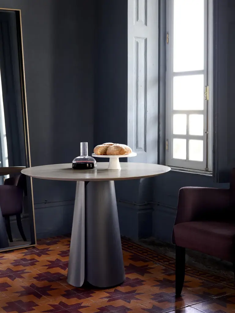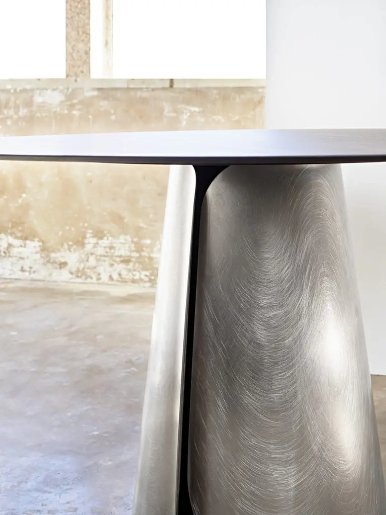 Steel, which is manually brushed to give it an